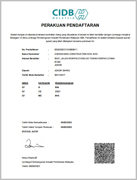 The team at ZHONGXIANG CONSTRUCTION SDN BHD is totally committed to